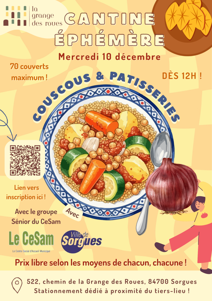 Cantine éphémère « Couscous & Pâtisseries gourmandes » avec le CeSam